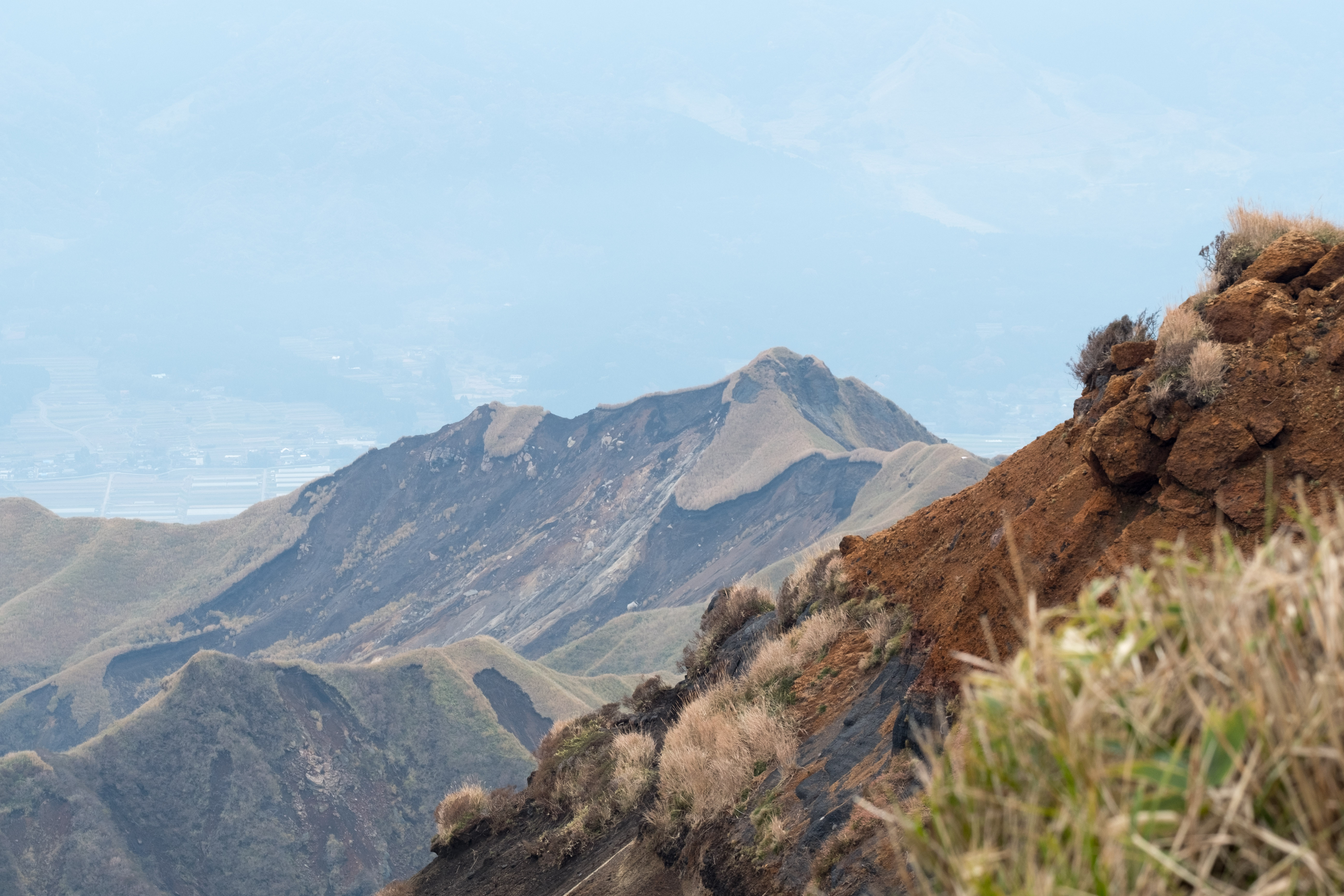 Gleich neben dem Hostel. Der Vulkan ist an dem feinen Wölkchen zu erkennen. Die Japaner gehen trotzdem auf Nummer sicher, man darf sich dem Vulkan nicht nähern.